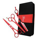 Zestaw Fox Color Red nożyczki + degażówki + nóż chiński kolor czerwony