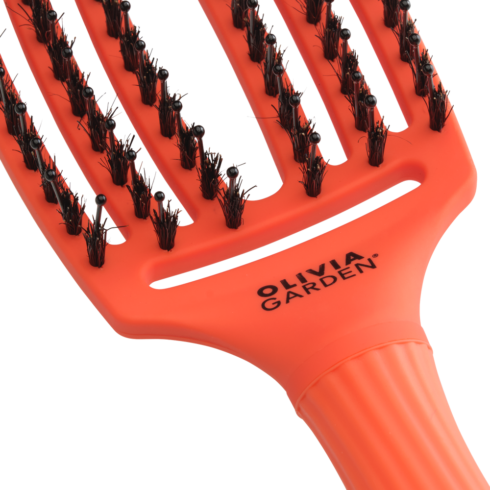 Dobór szczotki to kwestia mocno indywidualna. Przede wszystkim warto się zastanowić jaki efekt chcemy osiągnąć po zastosowaniu konkretnego produktu. Finger brush to sztandarowa szczotka marki Olivia Garden, która genialne sprawdzi się do codziennej pielęgnacji, masażu skóry głowy, gładkiego rozczesywania włosów bez ich ciągnięcia, szarpania bądź wyrywania. Dzięki swojej unikalnej budowie doskonale radzi sobie z różnym typem włosów, niezależnie od ich struktury czy zagęszczenia, a jej dodatkową zaletą jest wyjmowany szpikulec, służący rozdzielaniu włosów. Finger brush jest dostępny w wielu fantastycznych kolorach, trzech rozmiarach (należy się kierować grubością włosów) oraz z dwoma formami igiełek - podstawową oraz z naturalnym włosiem dzika, które bardzo korzystnie wpływa na kondycję włosów i wygładza je w przypadku puszenia się.